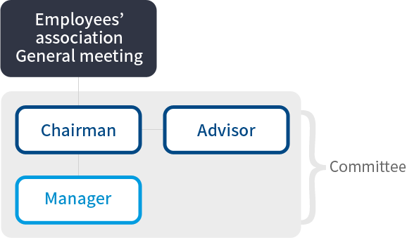ESCO’s Employee Association has a committee devoted to harmonious and effective management and consists of a chairman elected during a general meeting, a manager of general affairs and advisor (former chairman) who are appointed by the chairman.