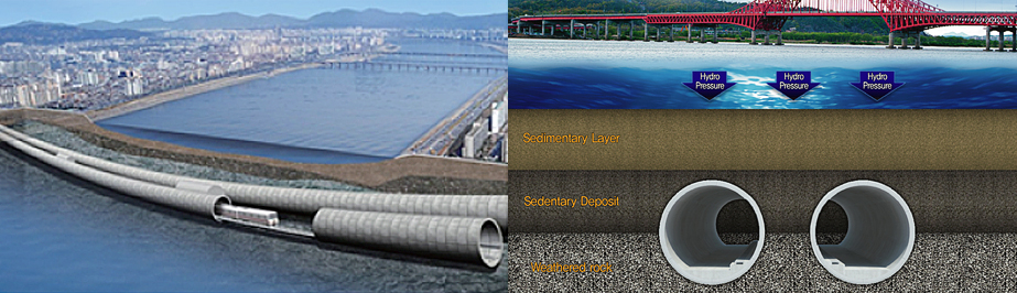 The layout shown above is one of the underwater tunnels designed by ESCO and its technical issues were: